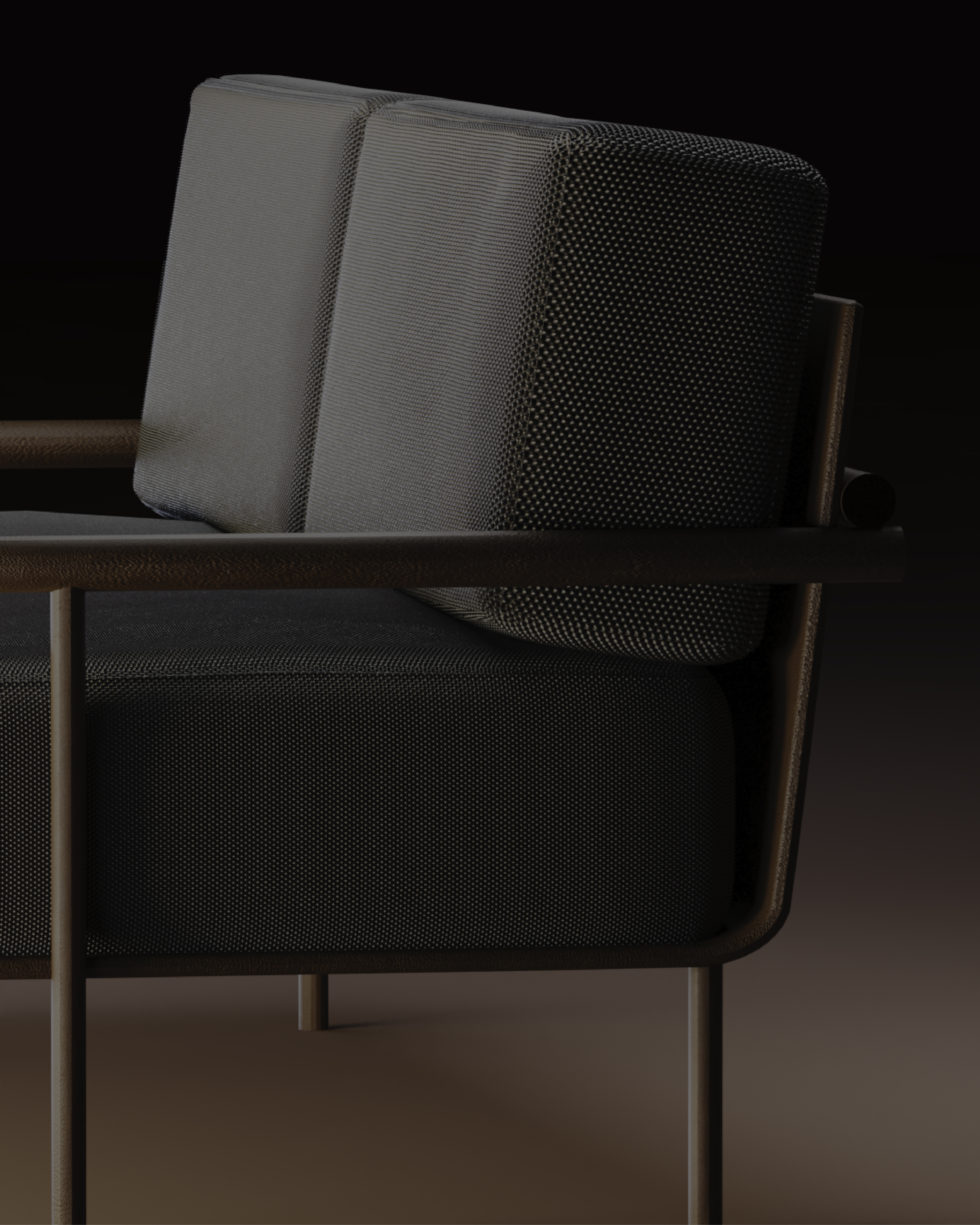 This 3D chair model studies structure and surface, demonstrating how digital detailing captures comfort and refined form.