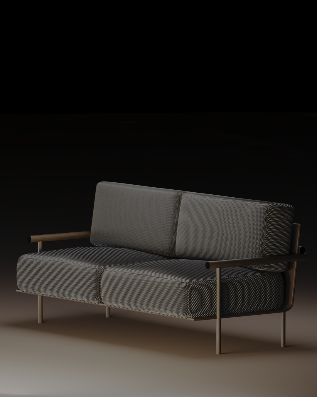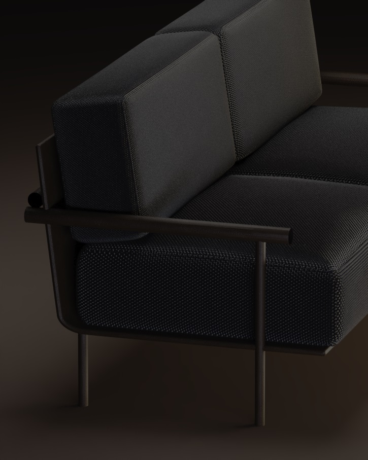 This 3D sofa model showcases minimalist elegance through clean lines, textured fabric, and metallic accents—perfectly blending comfort with contemporary design.